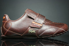 This edition is fitted in a full brown leather outside and a brown textile inner shoe. The stitching is orange and therefore contrasting with the brown leather. Lacoste is stitched on the heel of the shoe in orange and the crocodile is in gold metal on the side of the shoe. The velcro part to open and close the sneaker is equipped with a brown leather Lacoste sign. The sole follows your feet perfectly while walking. Imagine that you are wearing this sneaker whilst your best customer is placing his biggest order during your professional sales conversation.